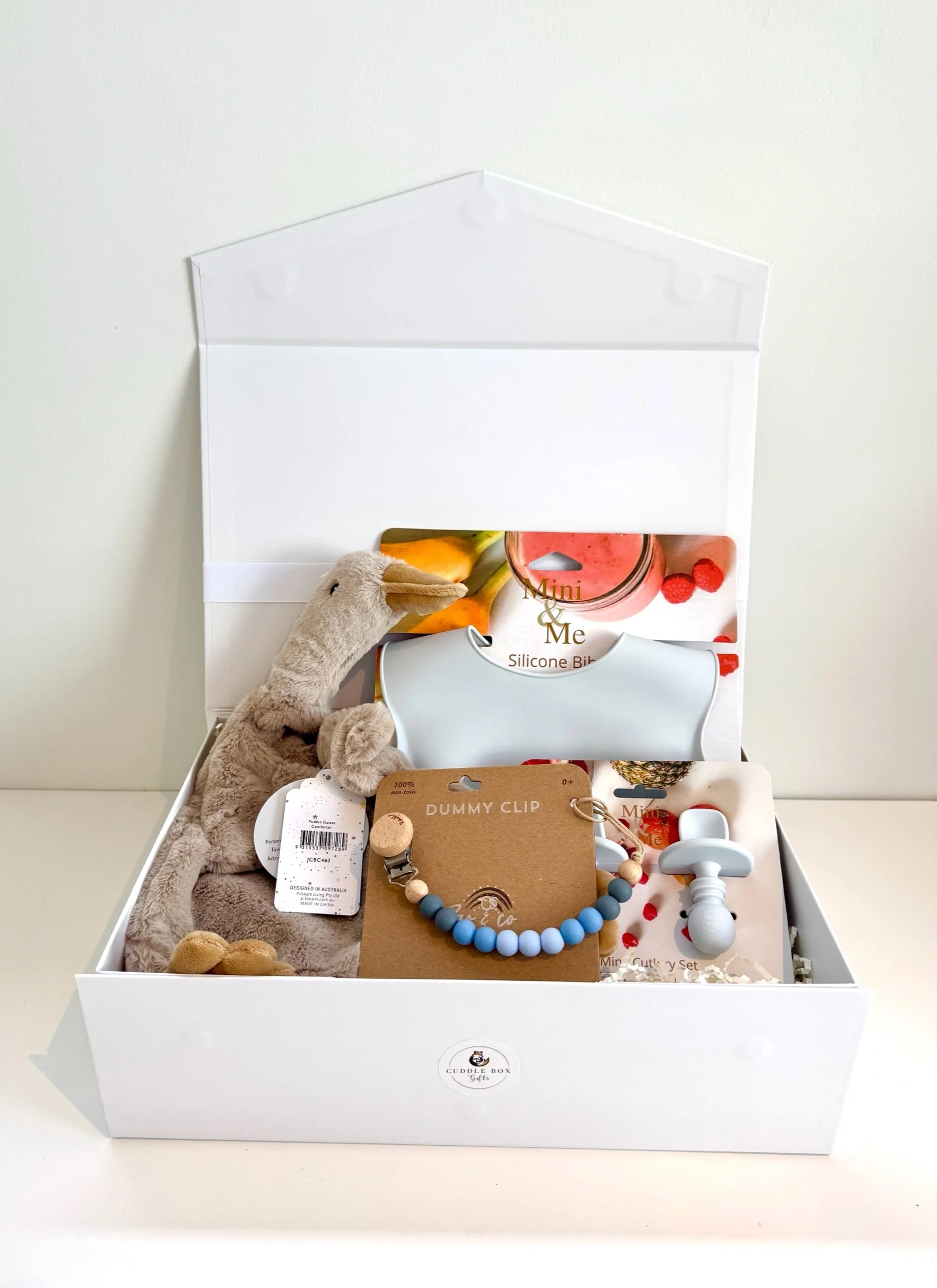 Puddles is an adventurous and gentle little Goose who loves jumping in puddles, playing Duck, Duck, Goose, or snacking on his favourites; Paddle Pops and corn. Soft, happy, and always up for fun, Puddles is the perfect cuddle buddy for little adventurers.